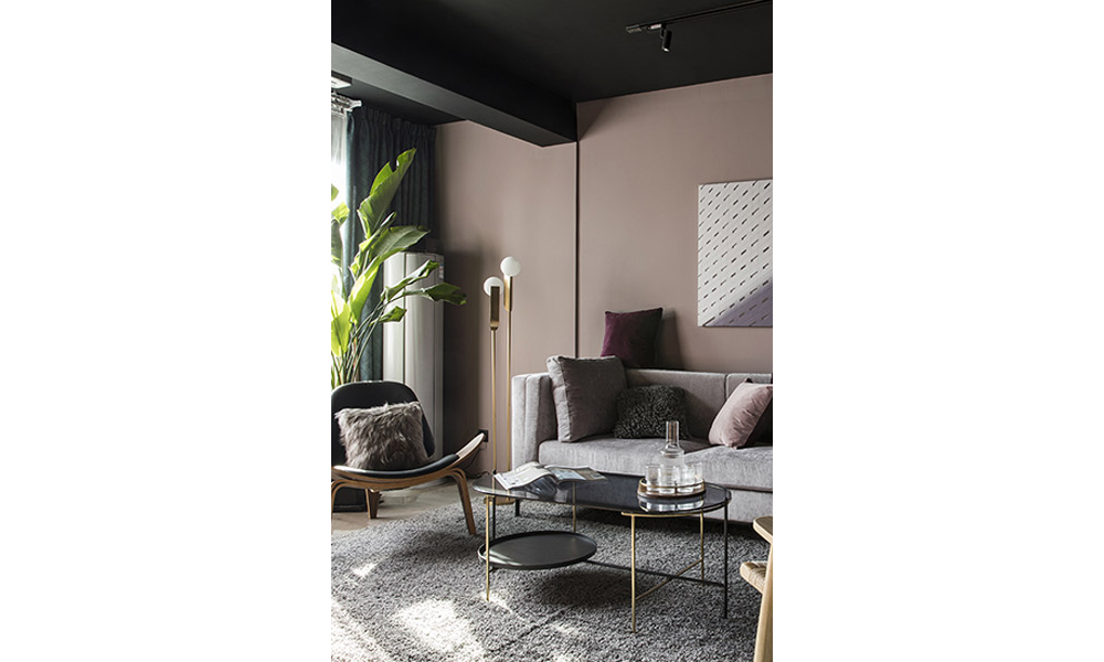 深紫灰色大多作为背景墙色彩使用,与清浅的紫色组成的调色盘在简约欧式的空间中营造浪漫的气氛,也可以在现代的风格中使用。