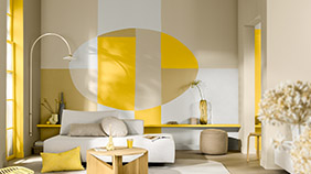 我们围绕“金盏黄”创作了“悦活新境”、“怡心畅意”、“世界之家”等三组灵感色盘,借此帮助大家更好地开启空间焕新体验,找到心仪的空间配色方案。此外,我们还从三组灵感色盘中提取了一系列不同色调的黄色,创作出“黄色变奏曲”色盘,以此致敬今年的黄色主题灵感!接下来,不妨探索一下如何通过其中一组色盘为客厅注入积极能量!