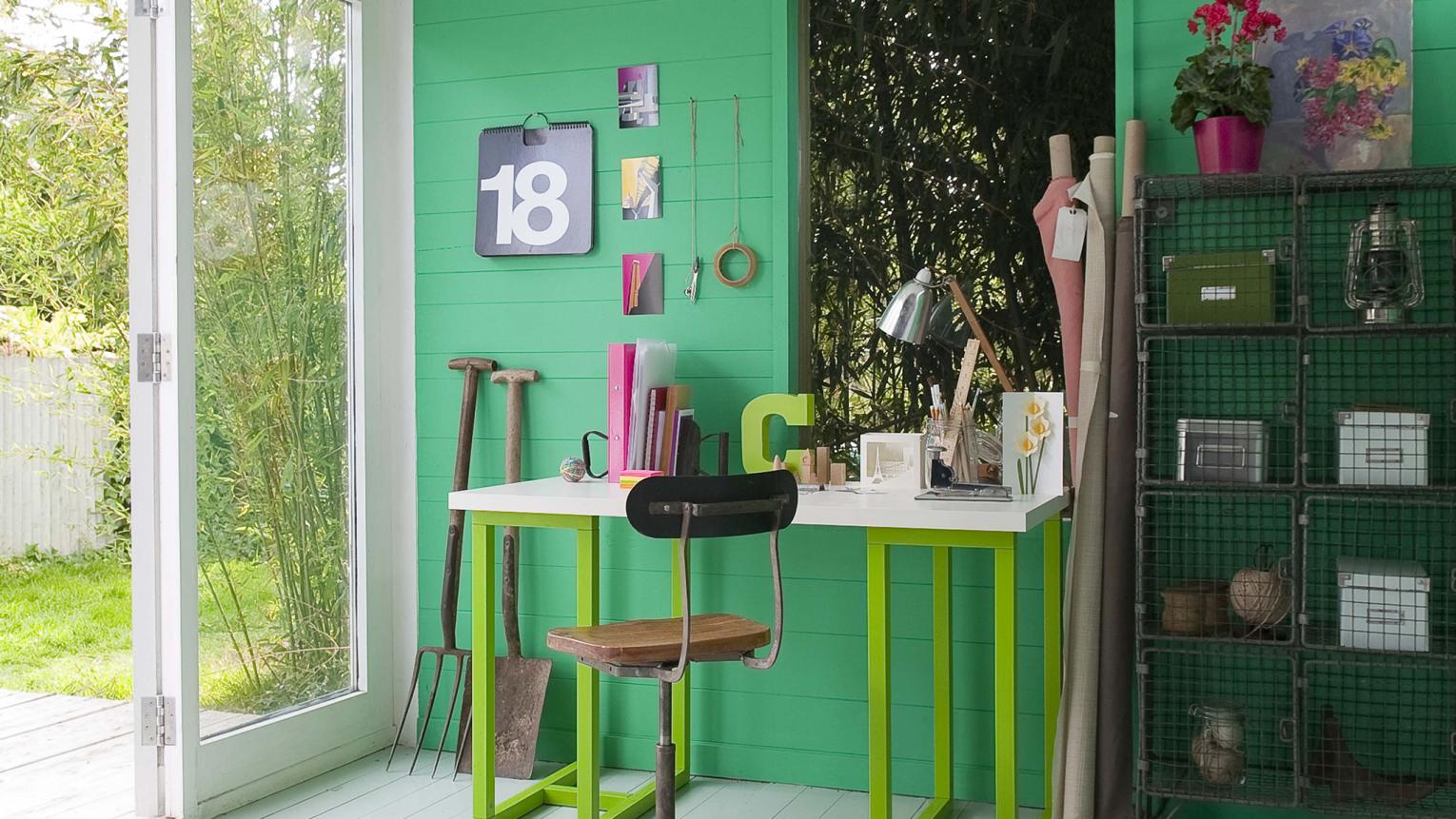 如果你的书房需要具备双重功能,既作为客卧也作为储存区,你就需要决定工作区域的边界,不然你会发现自己很容易在工作时昏昏欲睡。你的书桌对着一面墙吗?用能激发你灵感的单色墙面漆来粉刷这面墙,这有助于划清整个房间的办公区域。你的大脑更会自动将这个颜色与工作联系起来。